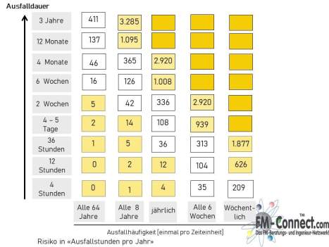 Zur Definition der Schadenauswirkung kann aufgrund der Dominanz der Betriebsunterbrechungskosten die Dauer des möglichen unplanmäßigen Anlagenstillstands herangezogen werden: