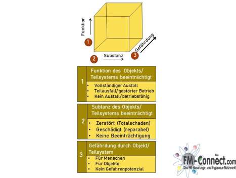Klassifizierung von Ausfällen basierend auf Funktion, Substanzbeeinträchtigung und Gefährdungspotential für Menschen und Objekte.